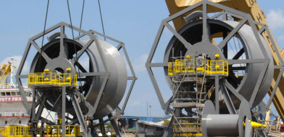 Offloading hose reel designs to safe and efficient loading and offloading operations on offshore and onshore applications. Offloading Hose Reel can use with a ship to ship or ship to shore operation.